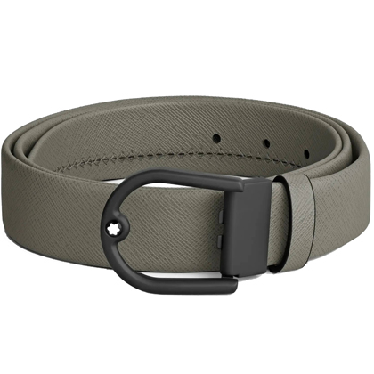 Кожаный ремень 35 мм из кожи серого цвета, пряжка в форме подковы от магазина премиальных ручек Premium Pens в Димитровграде.